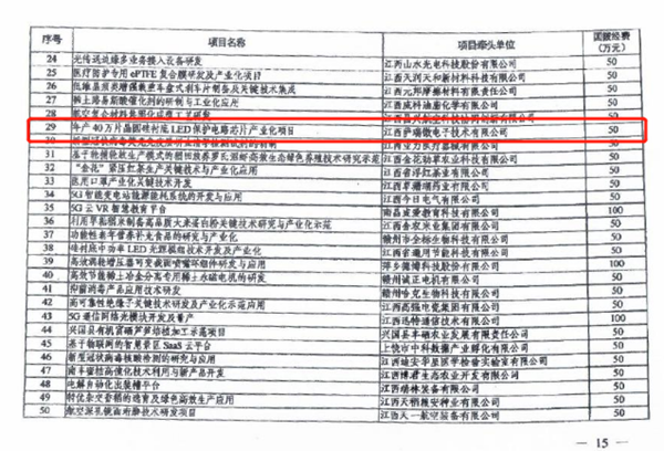近日,江西省科技厅发布了《关于科技部“科技助力经济2020”重点专项拟立项项目的公示》,赣江新区临空组团江西米兰微电子技术有限公司“40万片晶圆硅衬底LED保护电路芯片产业化项目”被列入拟立项项目公示名单。