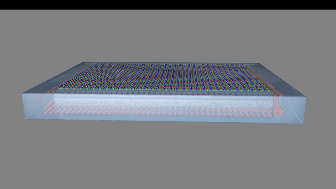 4、将蓝光芯粒、绿光芯粒与红光芯粒按照预设排布规则布置于封装区之上,且与第二介质层接触。